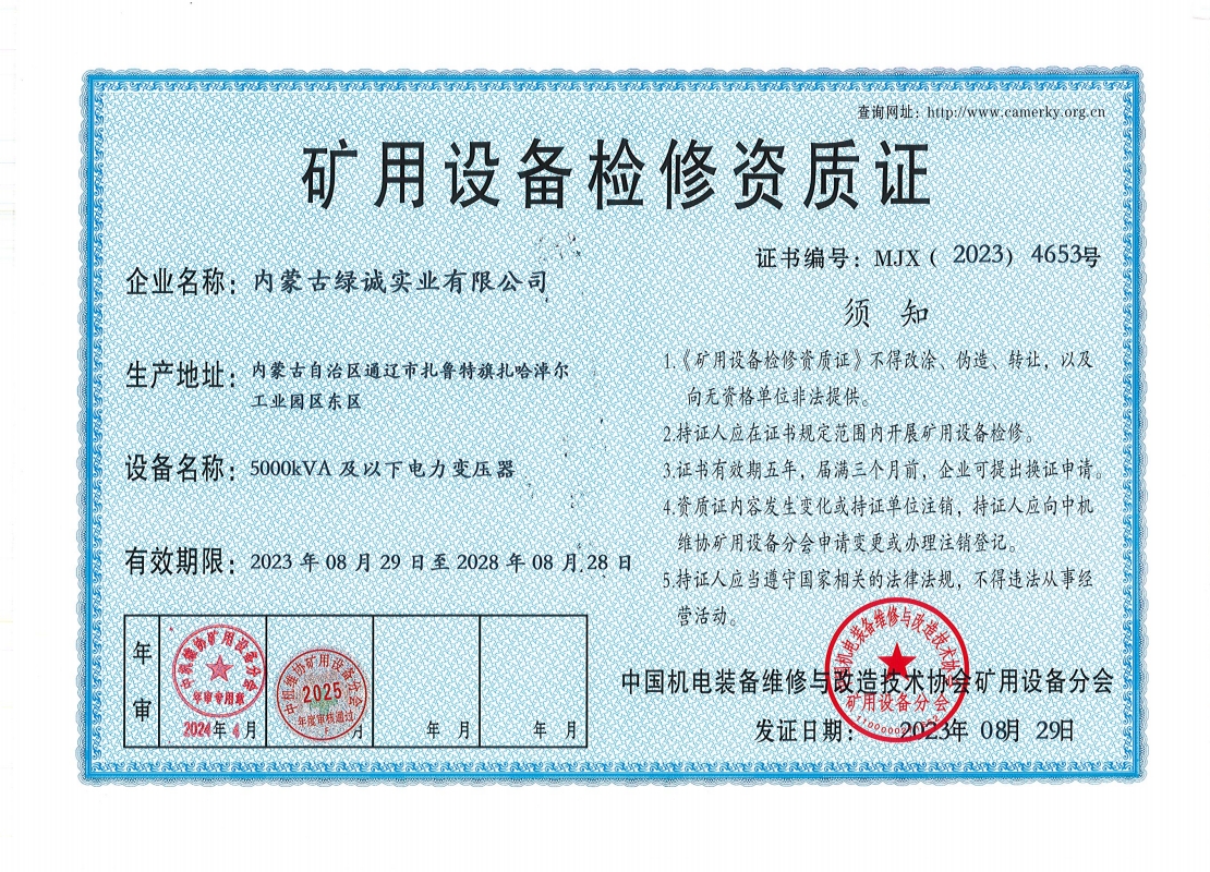 2018年我公司通過中國機電裝備維修與改造技術協會礦用設備分會審核并取得了9項礦用設備檢修資質證書。公司本著“誠信為本 質量為先 全心全意為客戶 ”的服務理念,圓滿完成各個廠礦的機械維修及配套服務,期待與您共同合作。